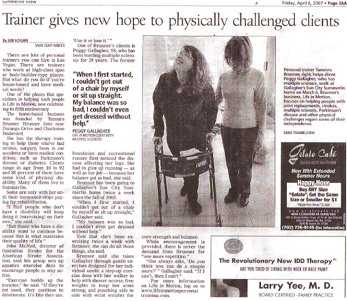 Physical therapy was soon provided on a twice a week basis by Tammra (Tammy) Brunner PTA. Under her kind and understanding direction I have progressed to being able to free-stand for 5 minutes, walk with a 2-wheel walker on the street for 1 mile. The plan is to soon be walking with a 4-wheel walker. My right side is now also showing signs of the paralysis disappearing and my right hand becoming functional.